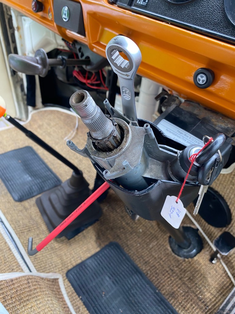 I have been having trouble with starting my engine, in particular with Starter Motors actually dying for no apparent reason. It was suggested to me that there may be a problem with my ignition switch kind of sticking after the release of the key turn. So, I decided to change this, it probably has not been replaced in the 40 years of the Bus’ existence, so why not? How hard can it be? Well it turns out a little tricky actually. Hopefully the guide below will help you if you ever have to do this, or change any part of the steering column and controls.
